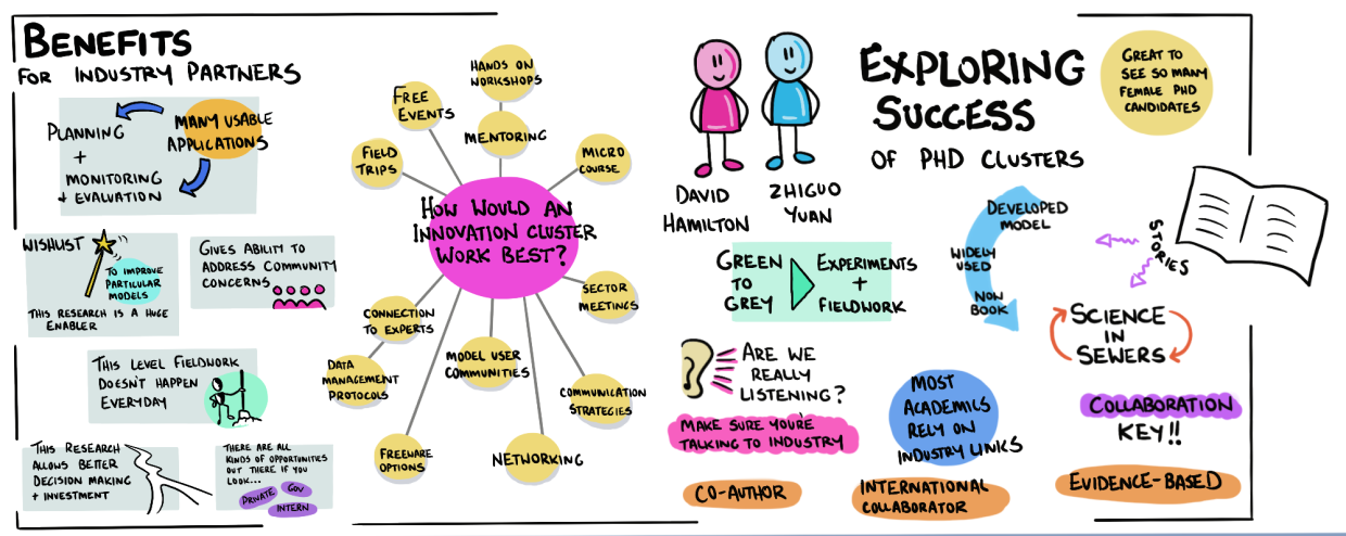 The afternoon session also included a panel discussion with current industry partners on the benefits the Innovation Cluster has provided them. Anna Holingsworth of City of Gold Coast, Nelson Corbett from DES and Chris Thompson from Seqwater were led by Piet Filet and explored how these collaborative opportunities have served their specific needs and provided broader opportunities for capacity building and problem solving.