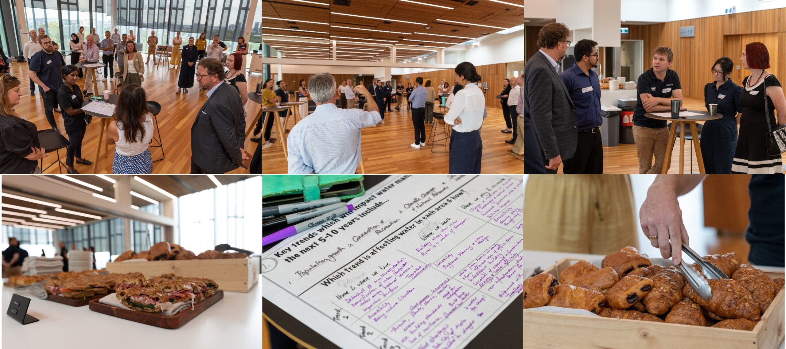 We quickly launched into the program with the first panel session. Piet Filet was joined by Town Planning expert Greg Vann (Director, Planning Ethos Urban), Local Government genius Kaye Cavanagh (Manager Environment and Sustainability, Ipswich City Council), Hydrogen Energy Researcher Jonathan Love (Associate Professor, QUT) and Cultural Values representative Ashleigh Faranda (Process Engineer, Jacobs) to unpack the various Trends and Drivers that will influence the water agenda in next 5 to 10 years. Conversation covered a variety of topics from how we’re going to accommodate population growth, what’s driving it and what role water has. We also heard a beautiful local indigenous story from Ashleigh that demonstrated how powerful stories are for sharing knowledge. Jonathon introduced us to the new world of Hydrogen power – we recommend you keep your eyes on this one. And Kaye gave some ground truths about how we interact with and value stormwater and our waterways, and what this means for the future of water management.